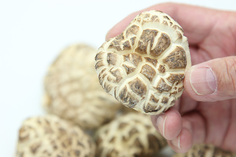 菌伞表面呈茶色图案,这是肥厚椎茸的依据。无论是天白冬菇还是茶花冬菇,这种冬菇都适合在寒冷季节缓慢生长,表面开裂为一大特征。