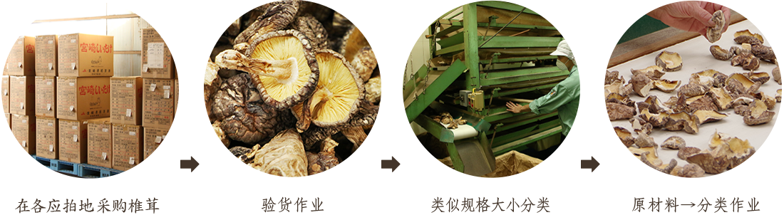 本公司中国工厂在中国原产商品方面,提供经过金属探测机全量检查的切片商品、完整 香菇产品。我们采用独创的质量管理方式,以期为客户提供可放心品尝的商品。