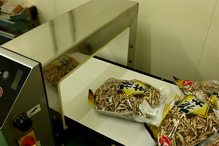 以上工序与传统工序一样,无法进行机械化作业。在上述最重要的工序中也需要规格等分类,所以需要分配技术娴熟的员工进行操作。 一旦搞错规格,则需重新作业,还可能发生异物问题。 同时,上述作业中还会使用金属探测机,可探测原料中有无混入金属片等异物。