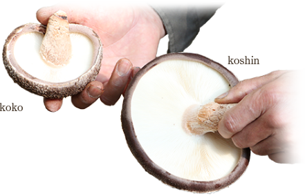 The mushroom cap of “donko shiitake” will open as the mushroom grows. Shiitake with a partially open cap is called “koko shiitake”, while shiitake with a wide-open cap is called “koshin shiitake”.