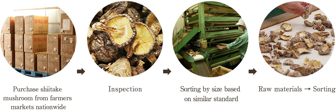 Our company has been purchasing Chinese shiitake mushrooms in the said land for about 20 years. In 2004, we established a Chinese factory in Tong’an District, Xiamen Prefecture, Fujian Province, China, and export shiitake mushrooms to Japan and around the world. Our corporate motto is “Provide the customers with safe and healthy foods.” We manage a comprehensive list of processes, from raw material procurement to processing and sales. Our company adopts Japanese production technology, and we manage to operate under its strict quality control system. For this reason, we acquired ISO 22000 HPCCP at our factory in China. It is also possible to produce the products according to customer's needs. We are very proud that we have achieved the AAA credit rating.