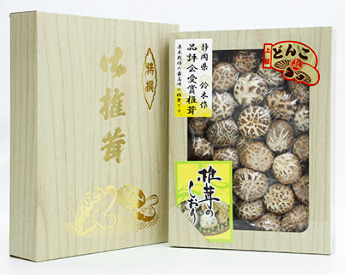 ※はじめて椎茸の人工栽培を始めた石渡清助にちなみ、伊豆産で原木栽培の乾椎茸の中でも基準に合格した最高品質のものに「清助どんこ」のブランド名を冠しています。