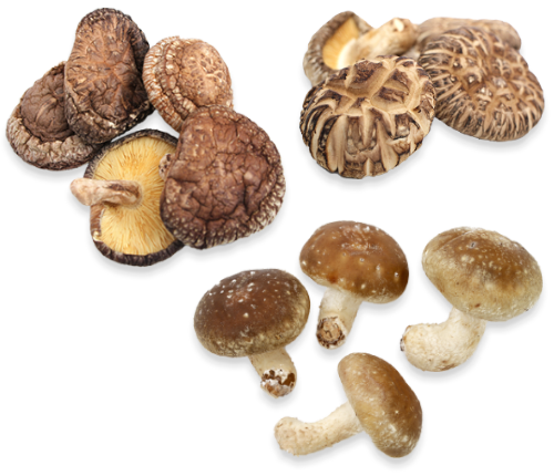 基本的な椎茸として天白冬菇、茶花冬菇、冬菇、撰、香信が御座います。