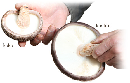 The mushroom cap of “donko shiitake” will open as the mushroom grows. Shiitake with a partially open cap is called “koko shiitake”, while shiitake with a wide-open cap is called “koshin shiitake”.